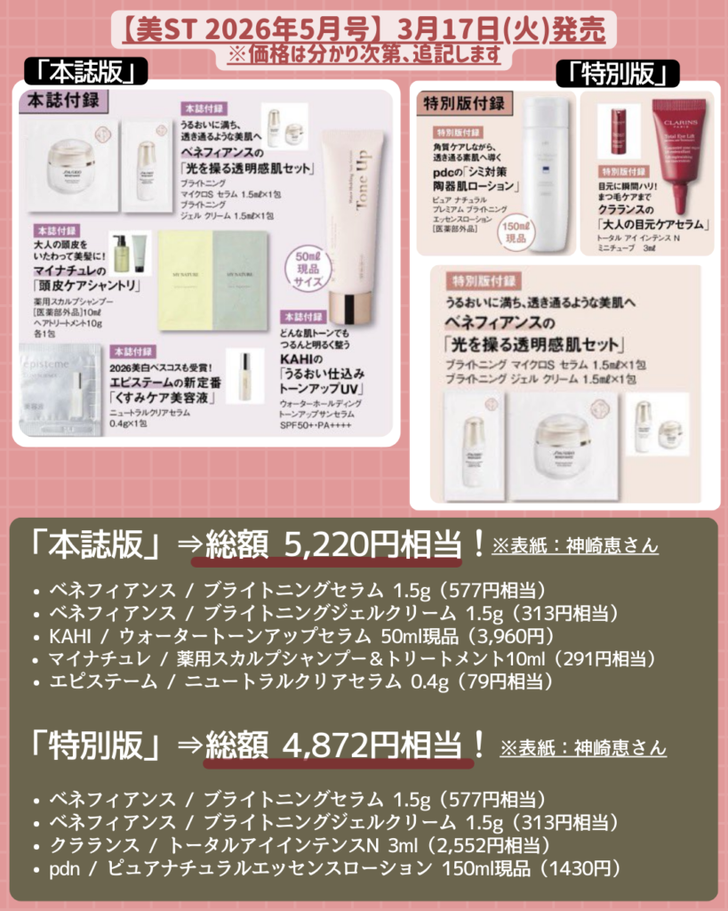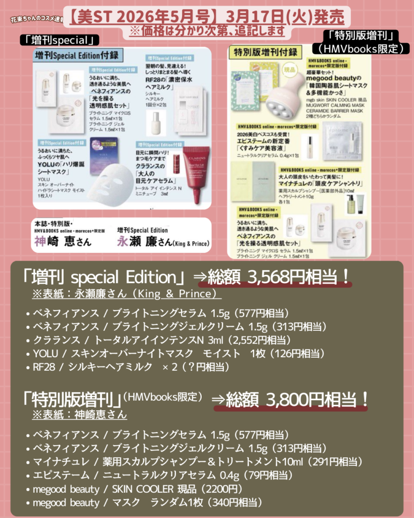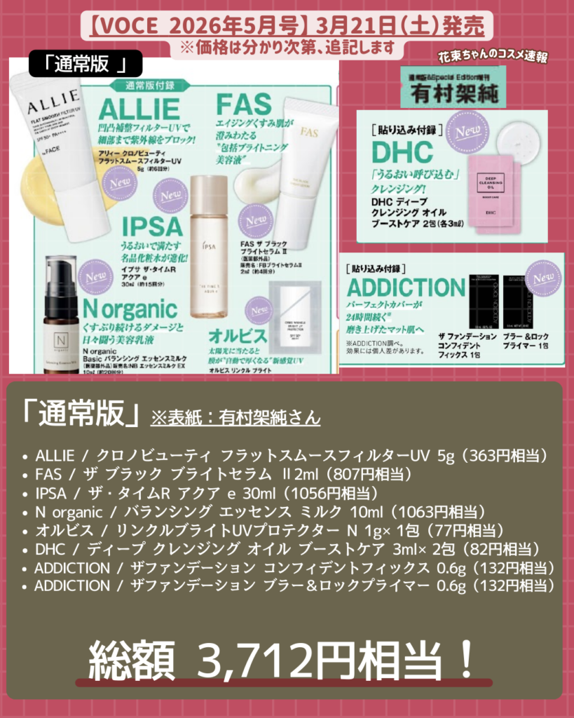 2026年3月に発売される、人気のコスメ美容 雑誌付録の内容&オンライン発売場所をまとめています!